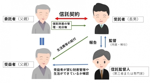 受託者となる子は、あくまでも財産の管理・処分を担うだけであり、管理を託した財産は受益者であり親の財産であることに変わりはないのです。