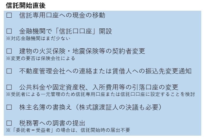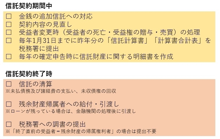 また、受託者の個人名義の口座なので、受託者が先に亡くなった時など口座の凍結などの問題が生じるので信託契約書に口座番号まで明記しておくことは大切です。